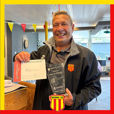 Afgelopen zaterdag heeft hoofdtrainer Jos Beerens uit handen van aftredend voorzitter Peter Castelijns de trofee en een waardebon van Brabant Sport Boxtel ontvangen voor zijn uitverkiezing tot Brabant Sports Trainer van de Maand oktober.