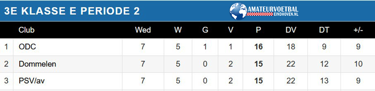 In de 3e klasse E gaan waarschijnlijk ODC, Dommelen en PSV/av uitmaken wie er met de tweede periode vandoor gaat.