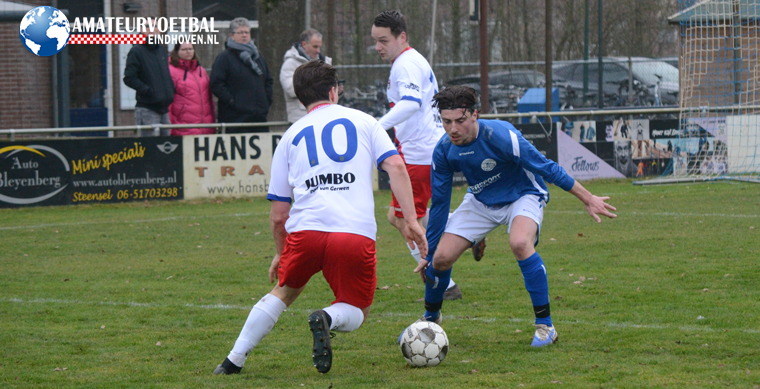 Het was – zoals gezegd – een niet erg aantrekkelijke wedstrijd op het koude en natte sportpark in Steensel. De toeschouwers keken verkleumd naar een duel tussen twee teams die wel wilden, maar niet hun beste spel lieten zien. Wat ook zeker meespeelde, is dat de thuisclub in de eerste helft Daan Bogaerts kwijtraakte met een hamstringblessure en dat Hapert al vóór de rust zonder Sem Liebregts verder moest. De eerste kansen waren voor Steensel. Marco Subnel schoot in de 6e minuut net voorlangs en vier minuten later moest Hapert-doelman Jurre Coppelmans redden op een gevaarlijk schot van Bogaerts.