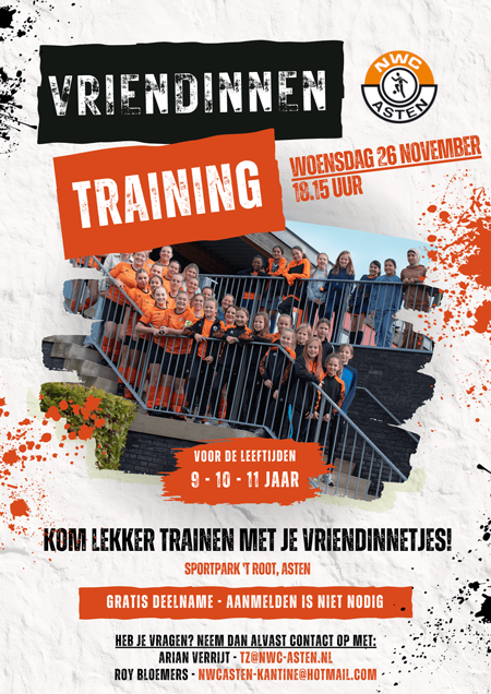 Op woensdag 26 november om 18.15 uur organiseert NWC een vriendinnentraining, speciaal voor meiden in de leeftijd van 9, 10 en 11 jaar!