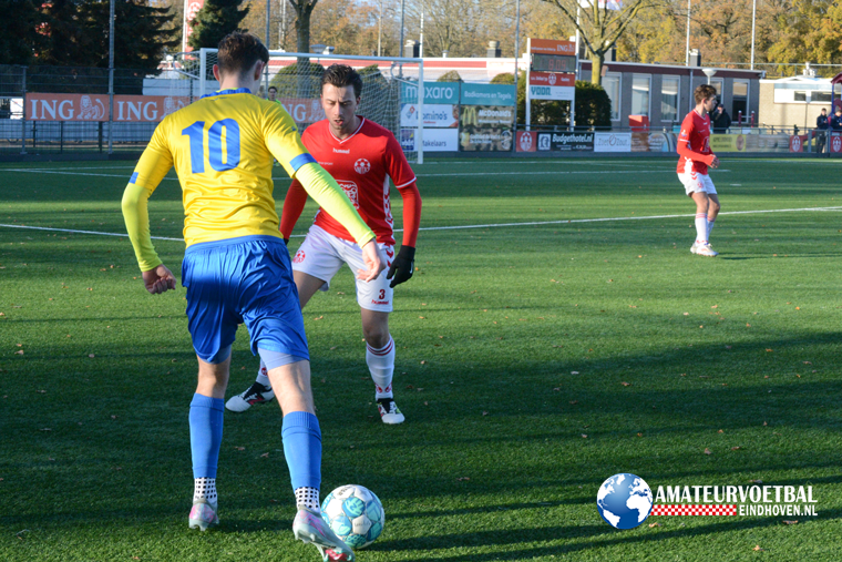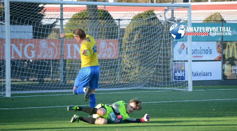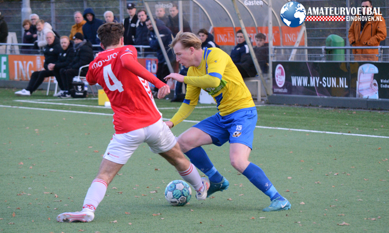 In de 23ste minuut kwam RKVVO bijna op gelijke hoogte. Een prachtige pass van Luc Segers belandde bij Jordy Huybers, die doelman Kay Spapens tot een knappe redding met de voeten dwong. Vervolgens was er een tegenvaller voor de bezoekers, toen Dave Jongenelen met een polsblessure naar de kant moest. Zijn vervanger Sam Weijers groeide vervolgens uit tot een van de beste spelers aan Veldhovense zijde. De volgende kans was overigens voor Unitas’59. Sam Franse stoomde op aan de rechterzijde en zette de bal voor op Don Diego Geraedts. Zijn volley ging echter naast.