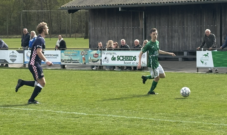 Ja dus. Het eerste gevaar kwam van de thuisploeg. Na een voorzet van Daan Gijbels kwam de bal bij Freek Van Bussel die teruglegde op Jaap van Diessen en die op zijn beurt de mogelijkheid tot een schot gaf af aan Thomas. Maas. Keeper Daan van Diepstraat wist de bal met een safe tot hoekschop te verwerken. De kans erna in de 9e minuut was wel raak. Een strak gegeven voorzet door Daan Gijbels werd onhoudbaar ingekopt door spits Jaap van Diessen. 1 -0. PSV deed in de 35e minuut iets terug via Nowakowski, die de bal na corner voor de voeten kreeg. Rust 1-1.